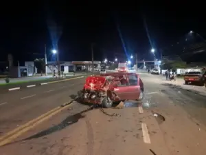 A colisão envolveu uma camionete S10, placas de Toledo e um Corsa Wind, emplacado em Ouro Verde do Oeste e um GM/Sonic LT HB, placas de Santa Helena.