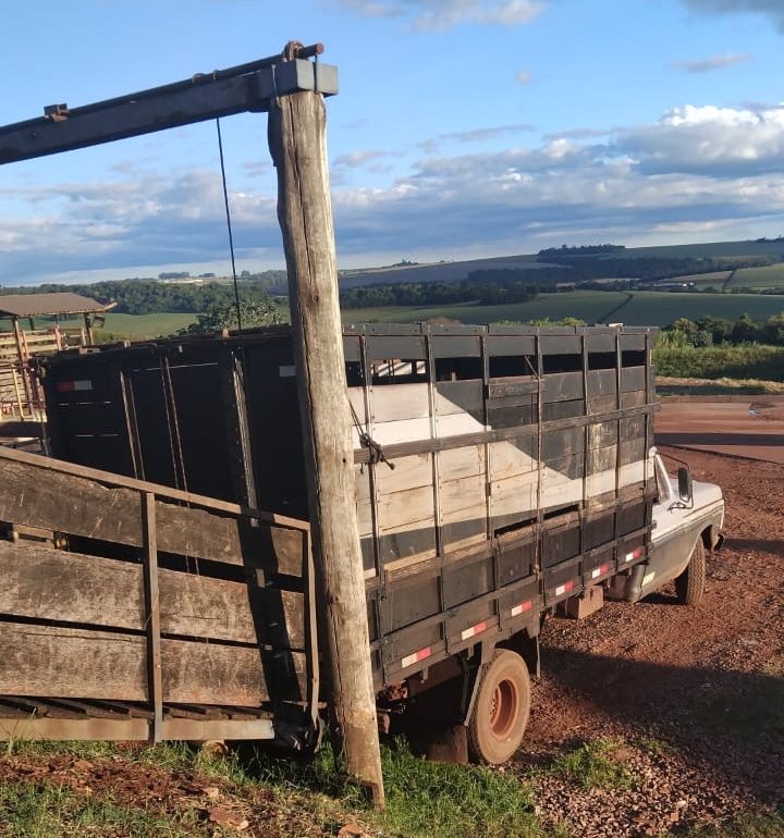 O veículo furtado é uma Ford F-4000, carroceria boiadeira, de cor preta e prata, placas ABB8A49.