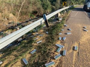 Carreta carregada com contrabando envolve-se em acidente na “Serra do Sabiazinho” na BR-163 proximo a Mercedes