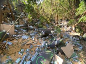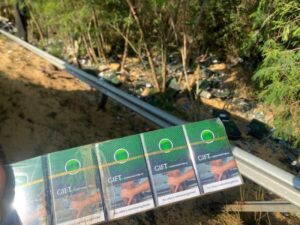 A carga de cigarros contrabandos do Paraguai ficou espalhada. A estimativa é mais de 800 caixas.