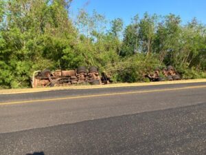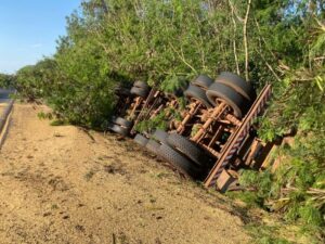 Carreta carregada com contrabando envolve-se em acidente na “Serra do Sabiazinho” na BR-163 proximo a Mercedes