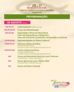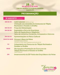 Para quem busca novidade e tecnologia nas áreas de aquicultura e orquidicultura, boa gastronomia, cultura, shows e diversão, a Festa das Orquídeas e do Peixe é o evento ideal.