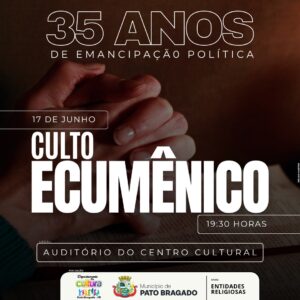 Tem início na noite desta terça-feira (17), a programação em alusão aos 35 anos de emancipação política do município de Pato Bragado. O momento conta com o tradicional culto ecumênico, promovido pelas entidades religiosas, a partir das 19h30, no auditório do Centro Cultural Arte e Encanto. Também haverá distribuição de bolo.