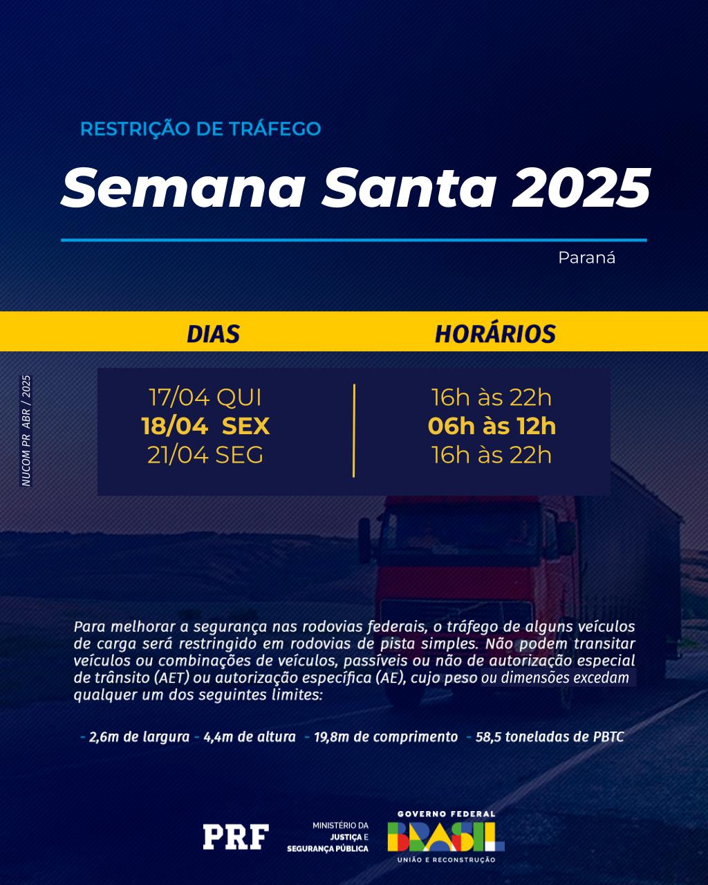 - Restrição de tráfego Semana Santa 2025