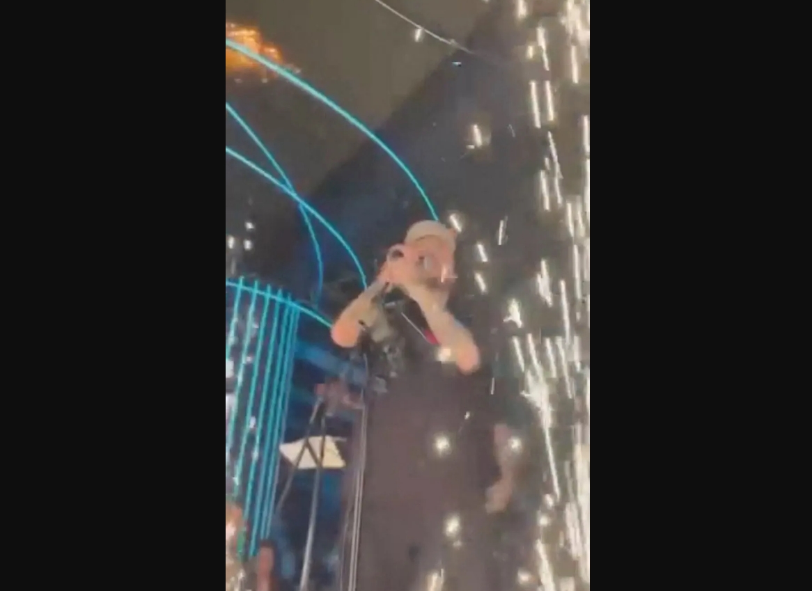 Filmagens mostram a banda tocando no palco quando dois sinalizadores disparam e as faíscas então pegam no teto antes de se espalharem rapidamente.